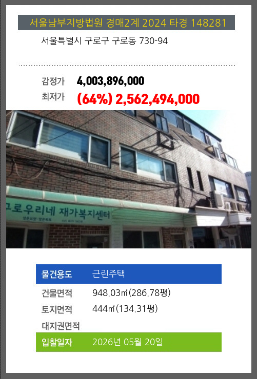 사건번호 2025 타경 20982 본건은 경상남도 거제시 남부면 갈곶리 74-1 제1동호소재하는 근린주택경매 물건의 포스팅입니다. 건물면적 [ 230.02㎡ (69.58평) ]토지면적 [ 207㎡ (62.62평) ] 시세를 반영한