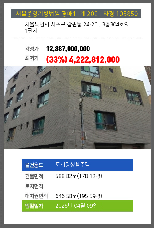 본건은 서울특별시 서초구 잠원동 24-20 . 3층304호외 1필지