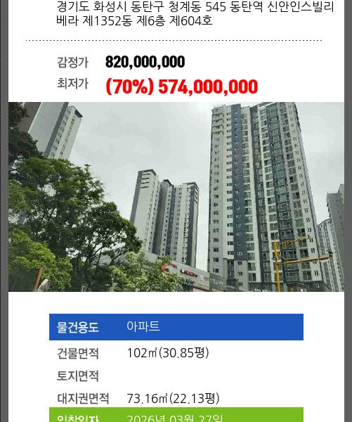 | 용도 | 근린시설 | 채권자 | 장** | 감정가 | 5,856,696,600 |