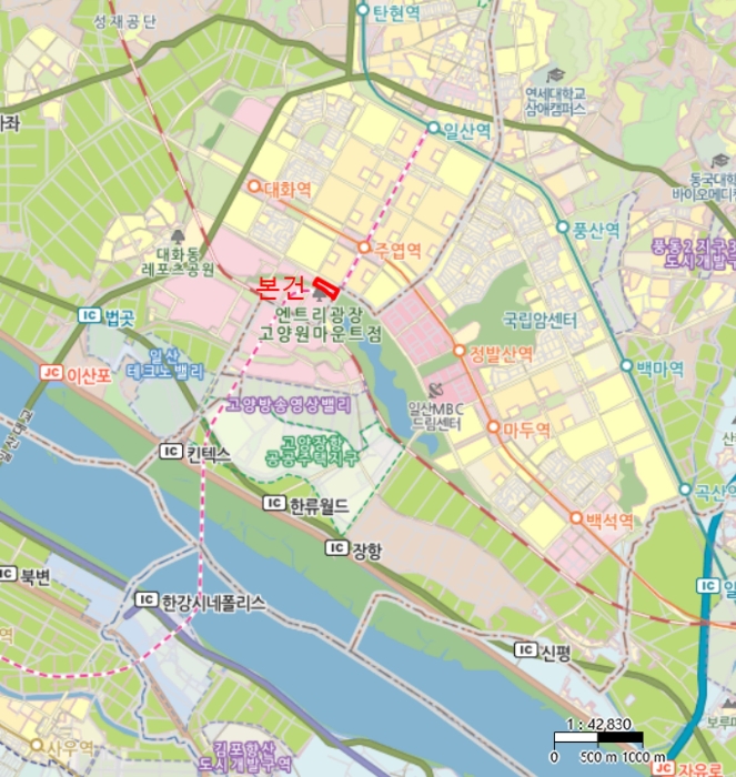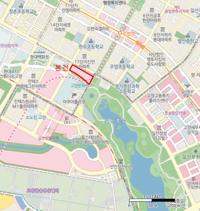 본건은 경기도 고양시 일산서구 대화동 1050-185 고양일산호수공원가로수길 제1층 제씨113호외 7개호