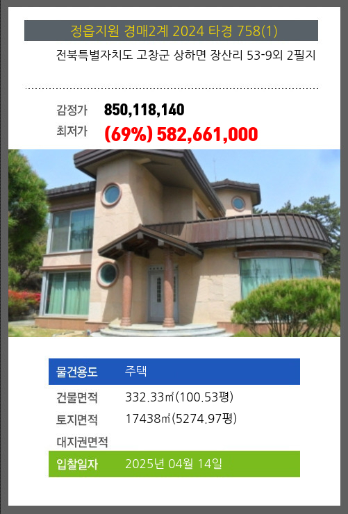 본건은 전북특별자치도 고창군 상하면 장산리 53-9외 2필지