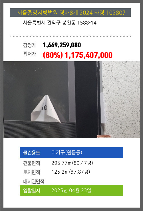 | 용도 | 다가구(원룸등) | 채권자 | 여** | 감정가 | 1,469,259,080 |
