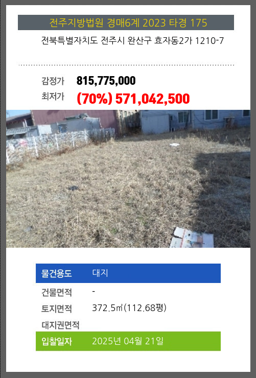 본건은 전북특별자치도 전주시 완산구 효자동2가 1210-7