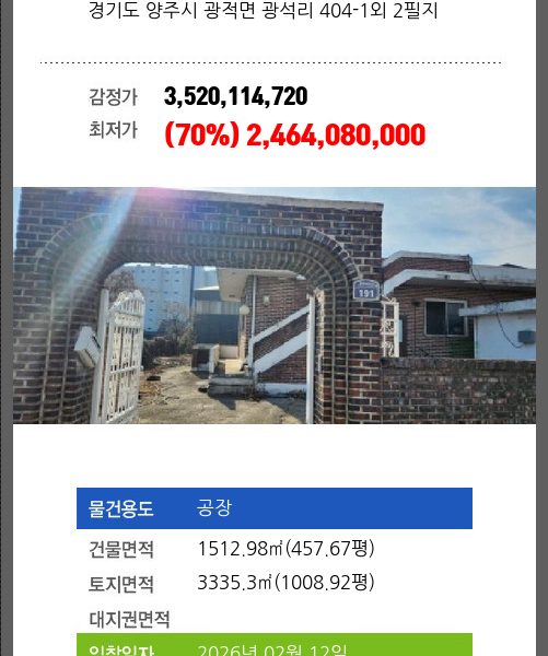 | 소재지 | [지번] 경기도 양주시 남면 신암리 158-25 외 3필지 [도로명 주소] 경기 양주시 남면 감악산로514번길 347-14 |