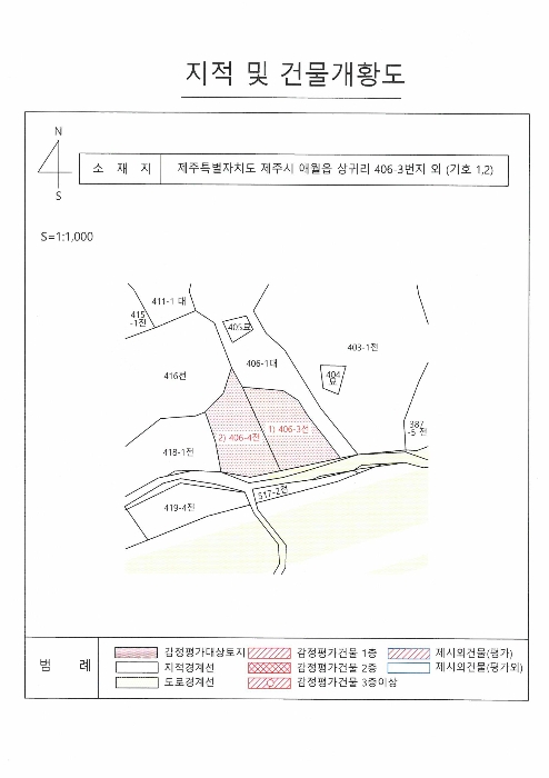 본건은 제주특별자치도 제주시 애월읍 상귀리 406-3 외 1필지