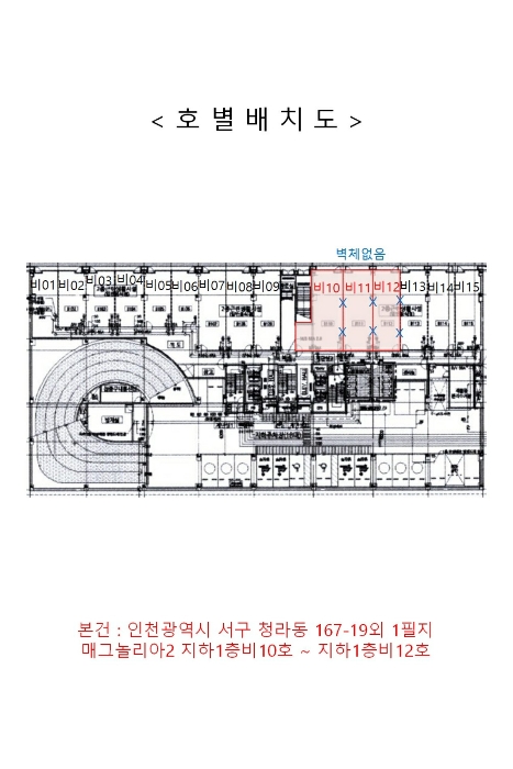 본건은 인천광역시 서구 청라동 167-19 매그놀리아2 제지하1층 제비10호외 2개호
