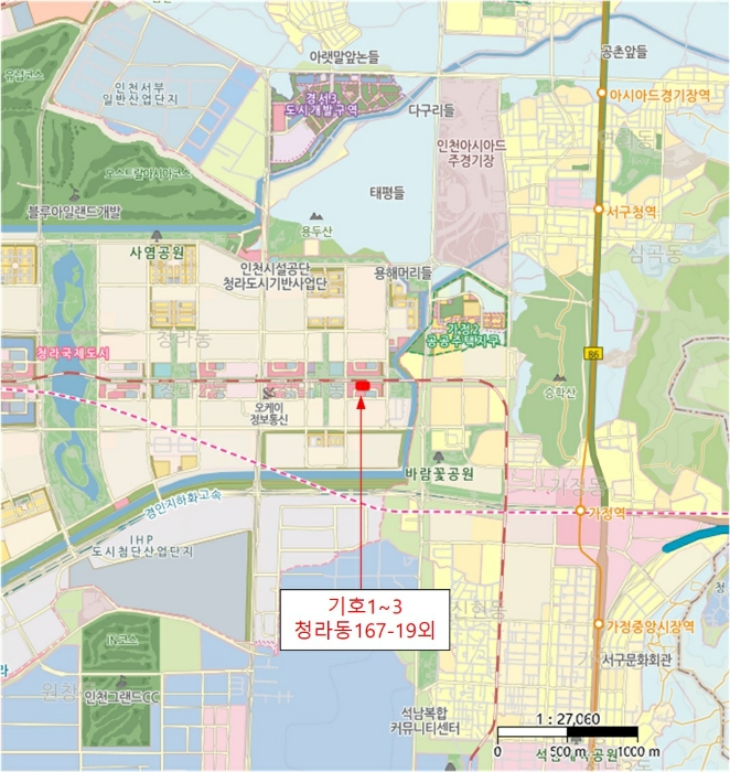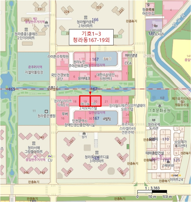 | 소재지 | [지번] 인천광역시 서구 청라동 167-19 매그놀리아2 제지하1층 제비10호외 2개호 [도로명 주소] 인천광역시 서구 청라에메랄드로76번길 7-13(청라동) 매그놀리아2 제지하1층 제비10호 |