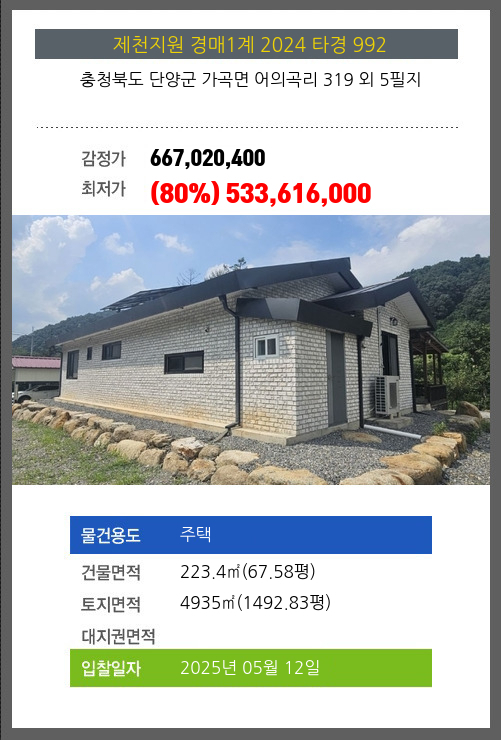 본건은 충청북도 단양군 가곡면 어의곡리 319 외 5필지