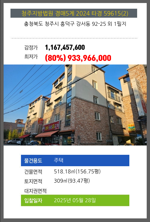 건물면적 518.18㎡ (156.75평) 채무자 최** 최저가 (80%) 933,966,000