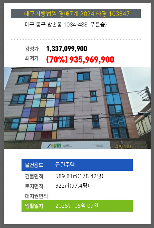 본건은 대구 동구 방촌동 1084-488 푸른숲)
