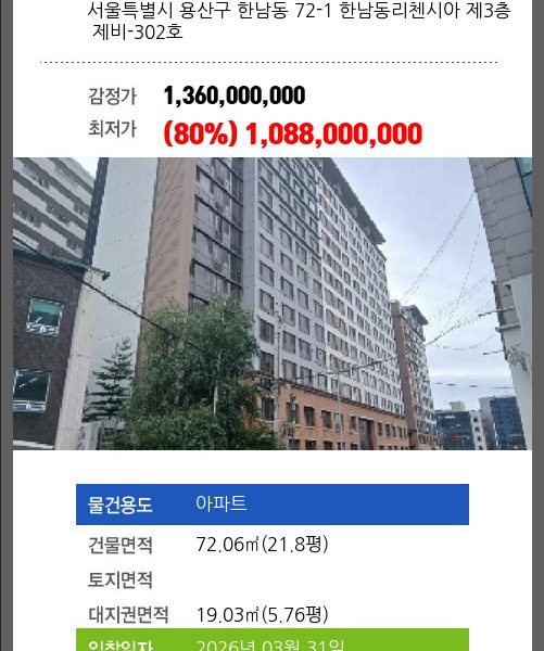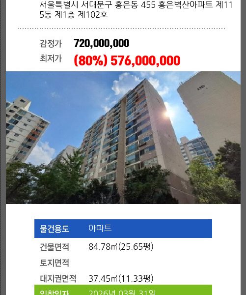 1회 유찰되어 감정가 대비 80%