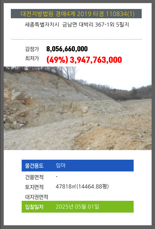 임야경매 금남면 대박리 367-1외 5필지 №2019 타경 110834(1)