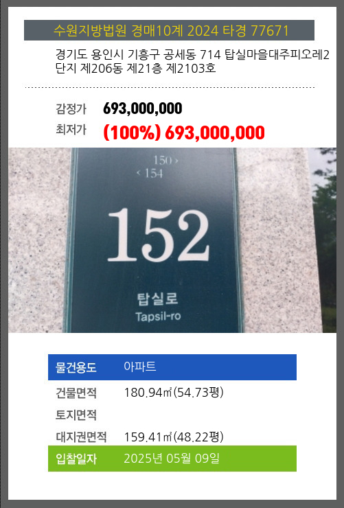 대지권 159.41㎡ (48.22평) 소유자 마** 보증금 (10%) 69,300,000