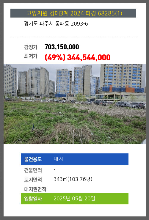 파주대지경매 파주시 동패동 2093-6 №2024 타경 68285(1)