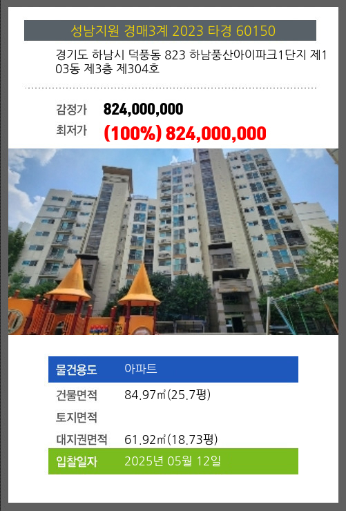 본건은 경기도 하남시 덕풍동 823 하남풍산아이파크1단지 제103동 제3층 제304호