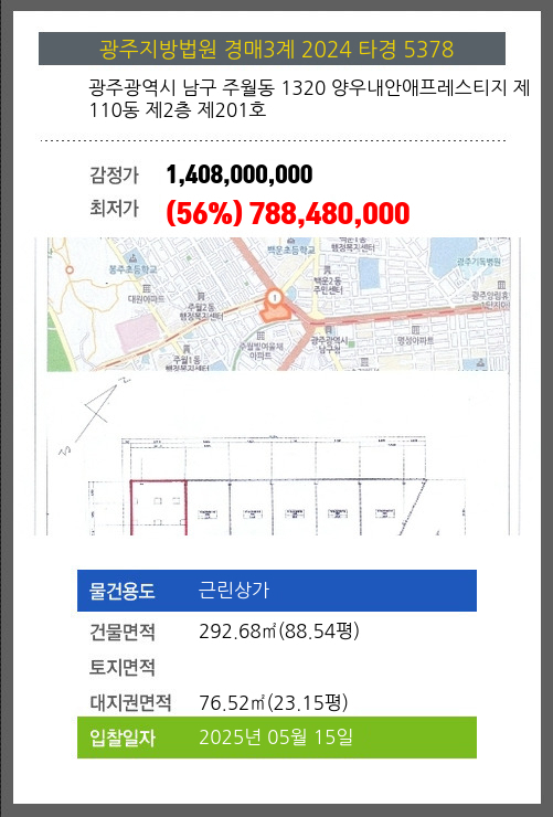 본건은 광주광역시 남구 주월동 1320 양우내안애프레스티지 제110동 제2층 제201호