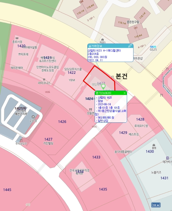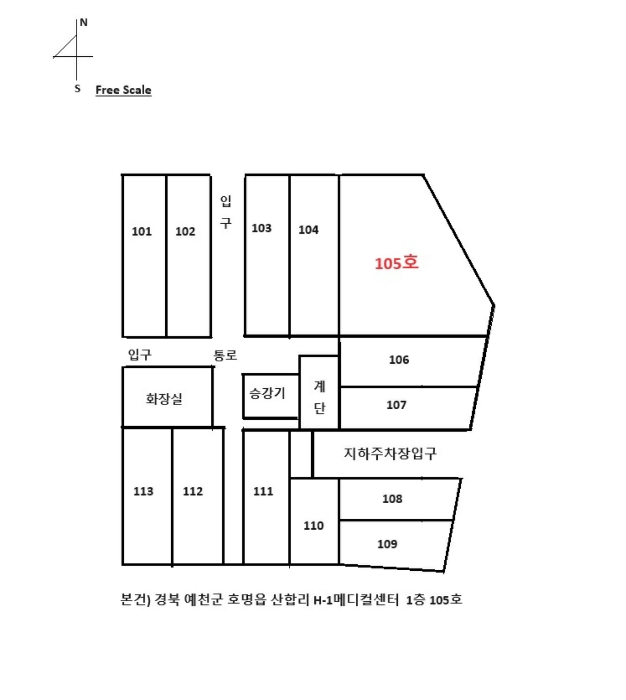 본건은 경상북도 예천군 호명읍 산합리 1423 에이치-1메디컬센터 제1층 제105호