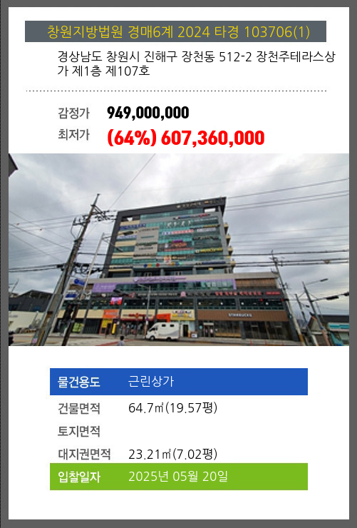 본건은 경상남도 창원시 진해구 장천동 512-2 장천주테라스상가 제1층 제107호