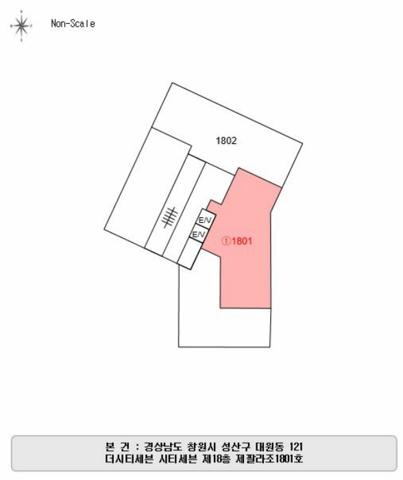 본건은 경상남도 창원시 성산구 대원동 121 더시티세븐 시티세븐 제18층 제팔라조1801호
