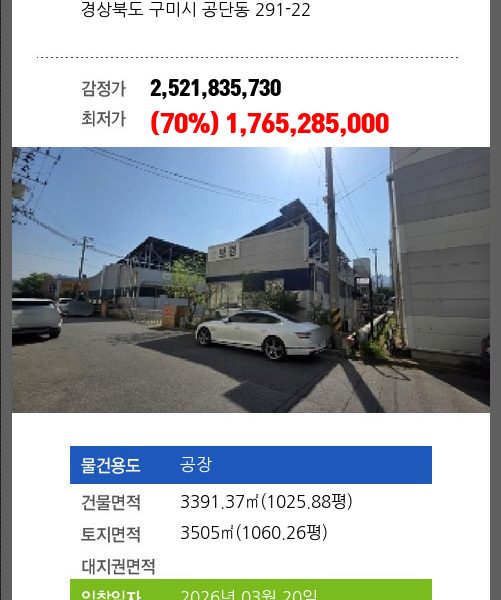| 용도 | 근린시설 | 채권자 | 이** | 감정가 | 973,097,360 |