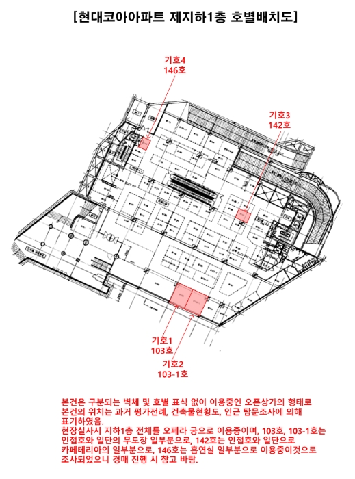 본건은 서울특별시 강동구 천호동 565 현대코아아파트 제지하1층 제103호외 3개호