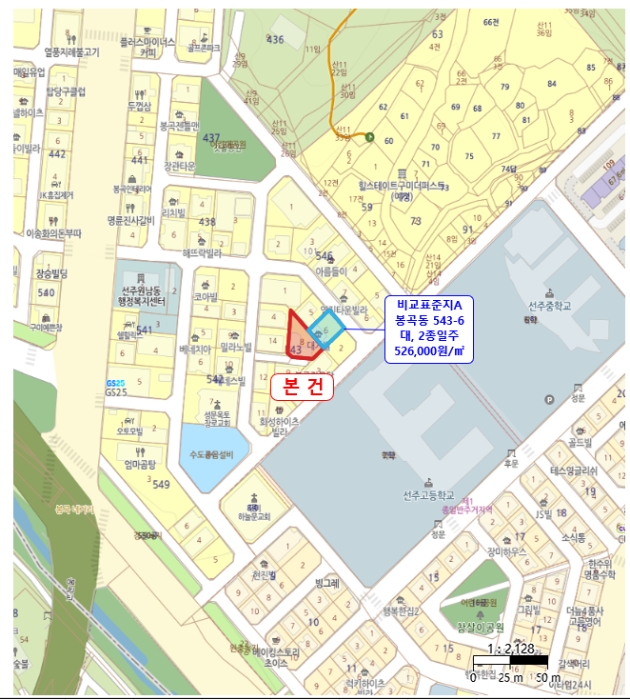 | 토지면적 | 408.2㎡ (123.48평) | 소유자 | 김**외1명 | 보증금 | (10%) 39,272,800 |