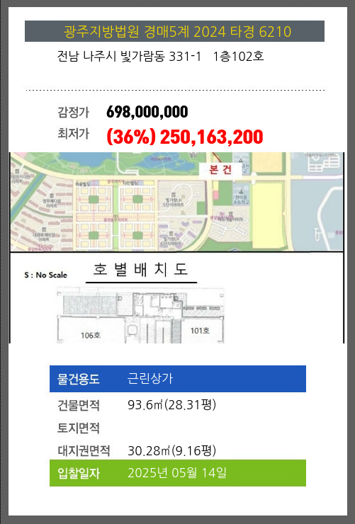 본건은 전남 나주시 빛가람동 331-1 1층102호