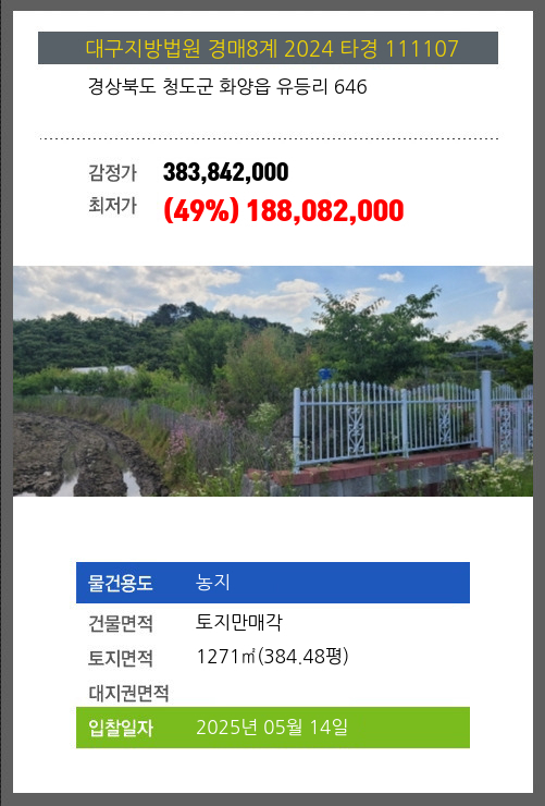 청도농지경매 청도군 화양읍 유등리 646 №2024 타경 111107