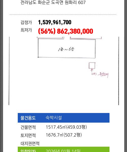 | 용도 | 근린상가 | 채권자 | 고** | 감정가 | 631,000,000 |