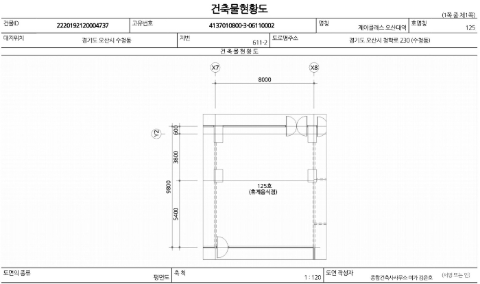 | 소재지 | [지번] 경기도 오산시 수청동 611-2 제이클래스오산대역 제1층 제125호 [도로명 주소] 경기도 오산시 청학로 230 제이클래스오산대역 제1층 제125호 |
