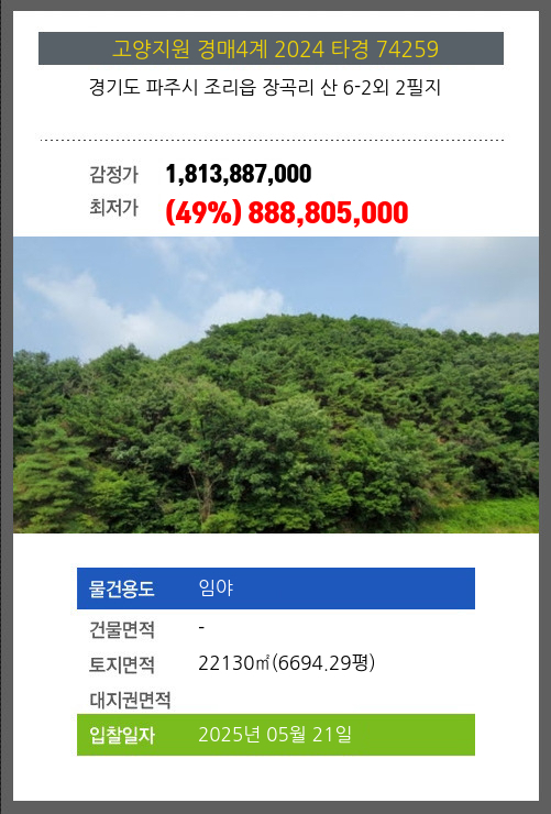 파주임야경매 파주시 조리읍 장곡리 산 6-2외 2필지 №2024 타경 74259