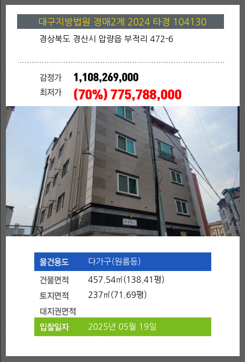 경산다가구(원룸등)경매 경산시 압량읍 부적리 472-6 №2024 타경 104130
