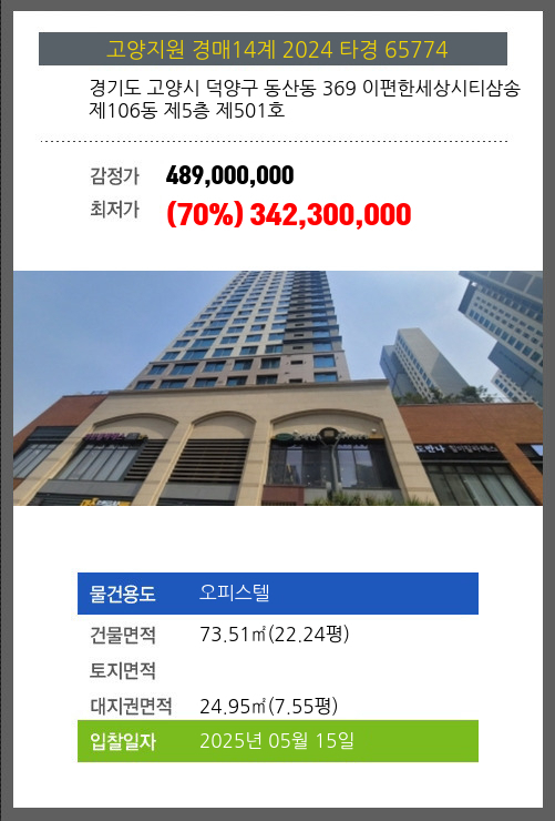 용도 오피스텔 채권자 엠** 감정가 489,000,000