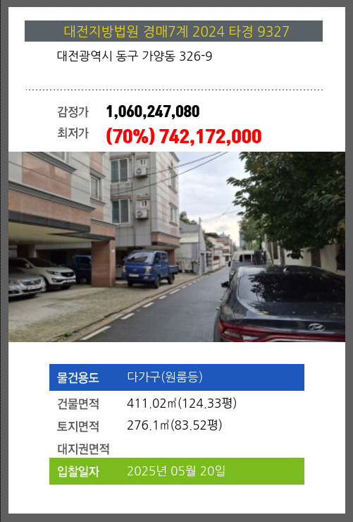 동다가구(원룸등)경매 동구 가양동 326-9 №2024 타경 9327