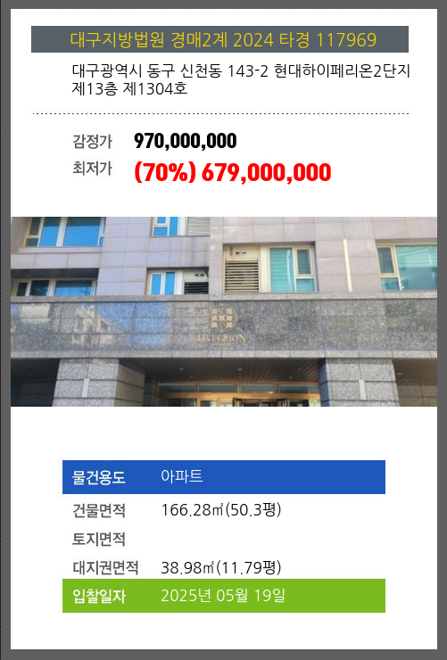 | 신건 | 2025-04-21 | 970,000,000 | 유찰 |