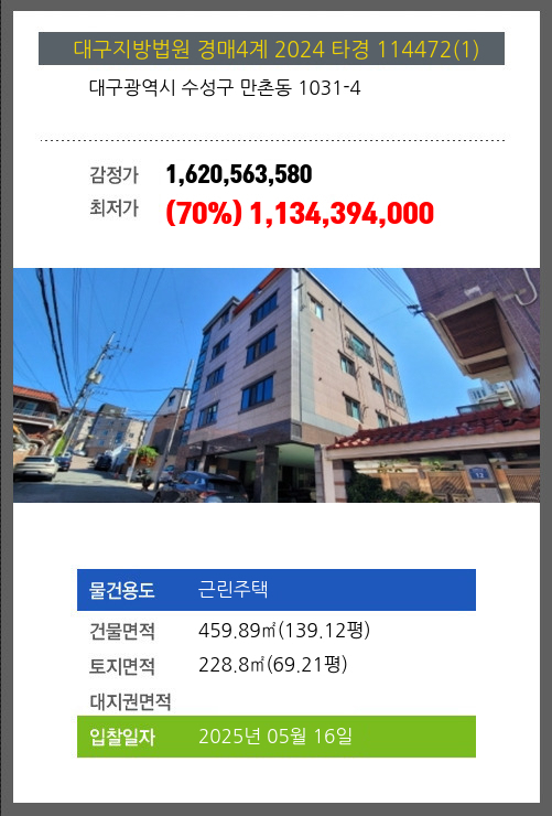 | 신건 | 2025-04-18 | 1,620,563,580 | 유찰 |