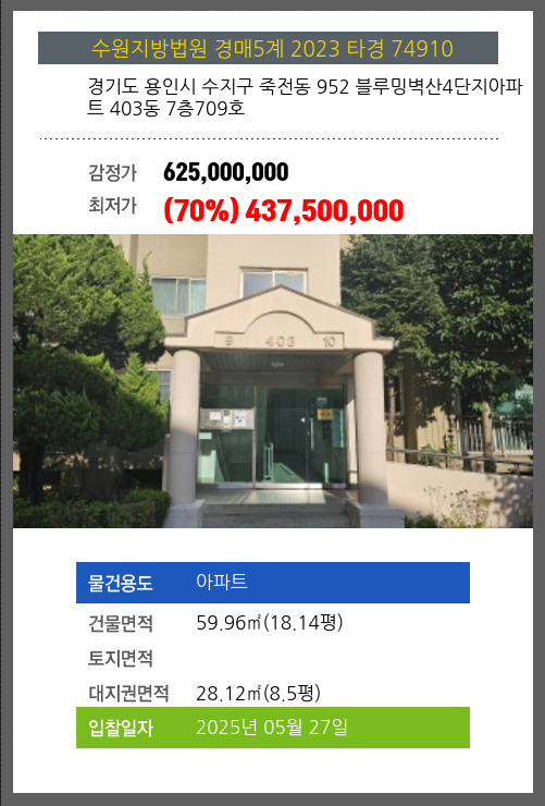 용인아파트경매 용인시 수지구 죽전동 952 블루밍벽산4단지아파트 403동 7층709호 №2023 타경 74910