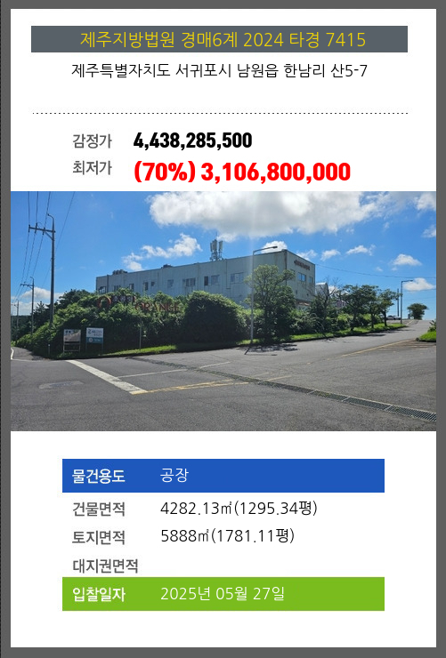 서귀포공장경매 서귀포시 남원읍 한남리 산5-7 №2024 타경 7415