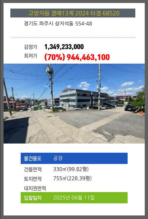 파주공장경매 파주시 상지석동 554-48 №2024 타경 68520