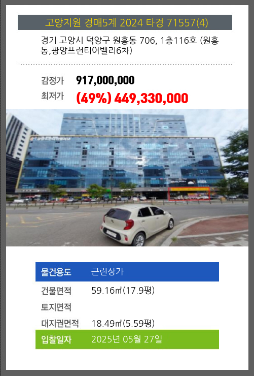 고양상가경매 고양시 덕양구 원흥동 706, 1층116호 원흥동,광양프런티어밸리6차 №2024 타경 71557(4)
