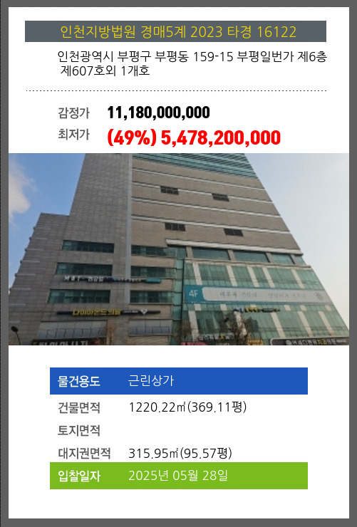 부평상가경매 부평구 부평동 159-15 부평일번가 제6층 제607호외 1개호 №2023 타경 16122