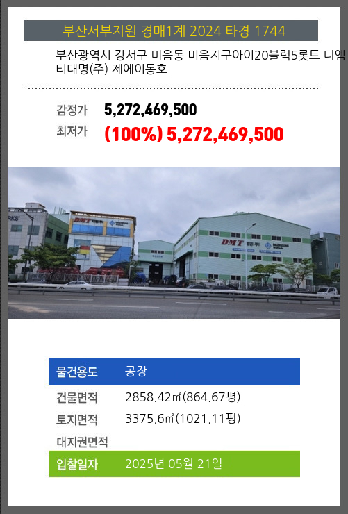 강서공장경매 강서구 미음동 미음지구아이20블럭5롯트 디엠티대명주 제에이동호 №2024 타경 1744
