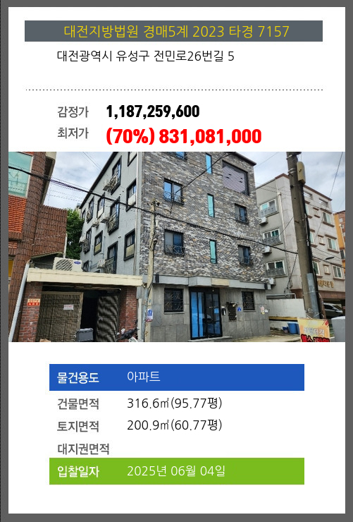 | 신건 | 2024-03-20 | 1,187,259,600 | 유찰 |