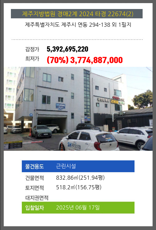 | 신건 | 2025-05-13 | 5,392,695,220 | 유찰 |