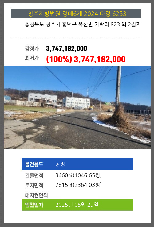 본건은 충청북도 청주시 흥덕구 옥산면 가락리 823 외 2필지