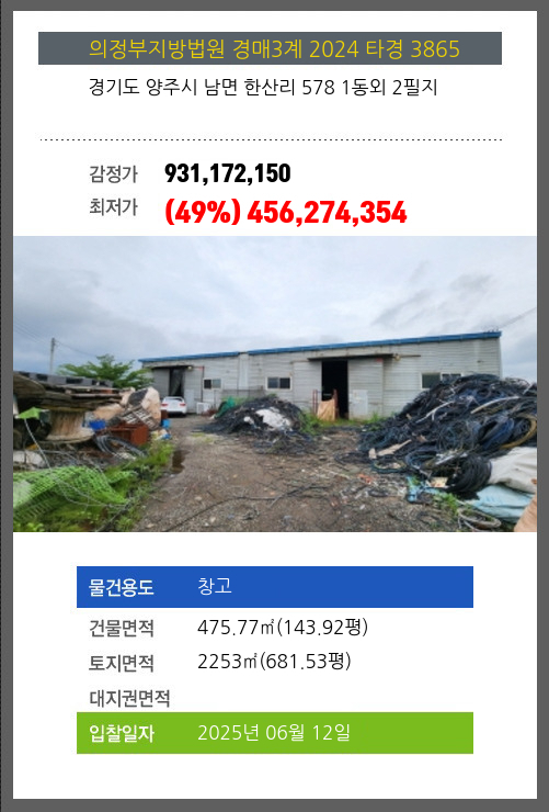 양주창고경매 양주시 남면 한산리 578 1동외 2필지 №2024 타경 3865