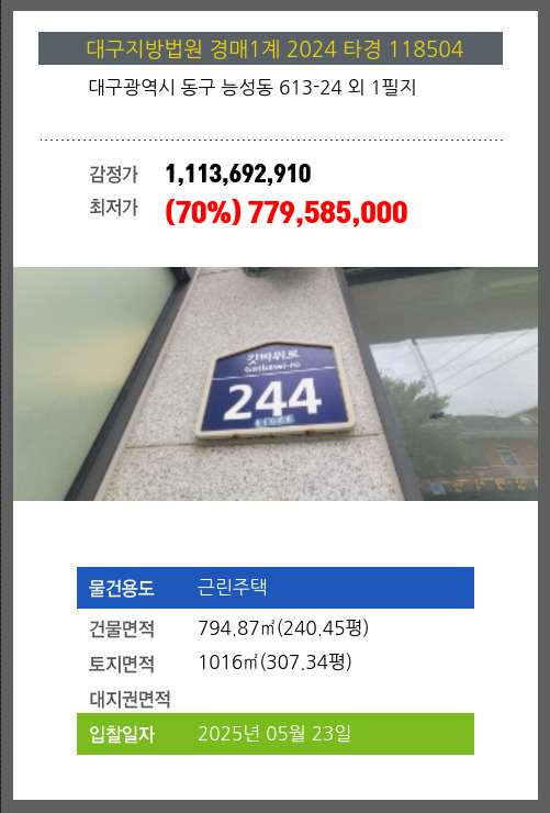 본건은 대구광역시 동구 능성동 613-24 외 1필지