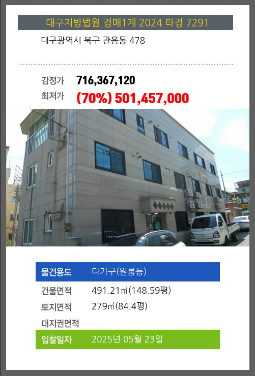 북다가구(원룸등)경매 북구 관음동 478 №2024 타경 7291