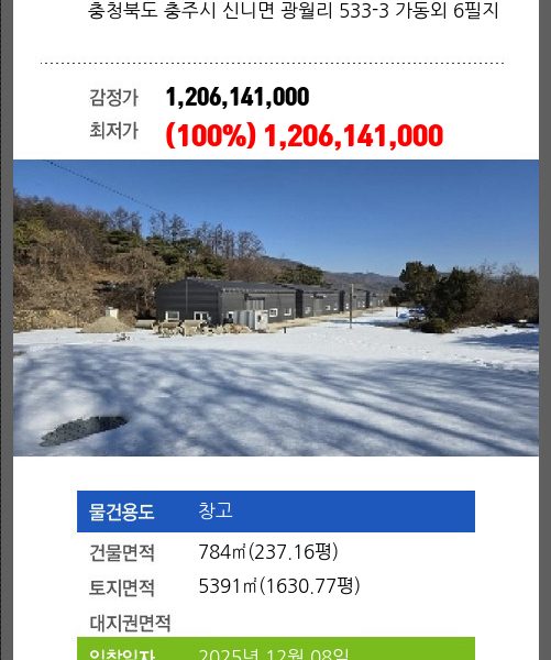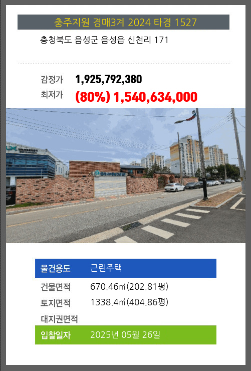| 건물면적 | 670.46㎡ (202.81평) | 채무자 | 안** | 최저가 | (80%) 1,540,634,000 |