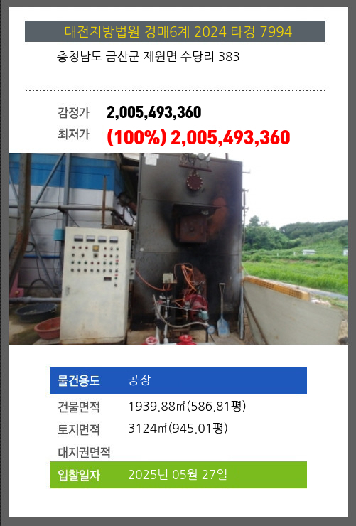 금산공장경매 금산군 제원면 수당리 383 №2024 타경 7994